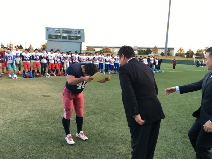 その後もカレッジの怒涛の攻めにより終了間際にも追加点をあげ、21対0で前半を折り返す。
