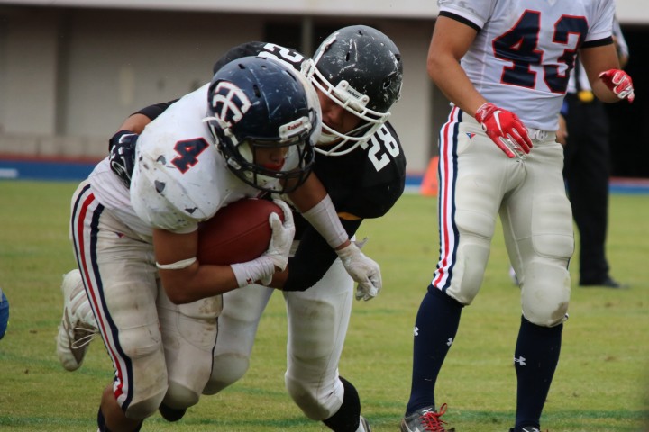 その後も日大工学部#55がサックからのファンブルフォースでターンオーバーを奪うと、