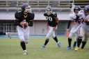 攻撃陣では#4のオープンを基軸に何とかタッチダウンを取りたい東北工大。#4のオープンと見せかけてからの#43へのパスが通り、タッチダウン。