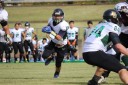 1Q 北海道大#98高野のキックオフ、東北大#88小坂のリターンにより試合開始 オープニングドライブ、東北大はショートパスや#33石尾のオプションでビッグゲインするも惜しくもTDできず。FGも失敗し攻守交代。 北海道大#87河合へのプレーアクションパスがヒットしビッグゲイン。その後、#27中牟田へのバブルスクリーンでTD。TFPは失敗し0-6。 東北大がゲインを重ねるも北海道#1西川のQBサックで1Q終了。 2Q 東北大の後半開始最初のプレー、プレーが崩れながらも#87芝山へのTDパスがヒット。TFPも成功し7-6で東北大リード。 北海道大、自陣からのオフェンスを始めるもパントで終わる。 東北大、OL陣が奮起。地上戦で優位に立ちゲインを重ねる。最後は#88小坂へのTDがヒット。TFPも成功し14-6で東北大リード。 北海道大、ランプレーとショートパスを中心に時間を使いながらゲインを重ね、FG成功で3点を返し、14-9とする。 北海道大のキックオフを東北大#88がこのキックをリターンTD。TFPが決まり21-9で前半終了。 3Q 東北大#8芝山のキックオフで後半開始。 北海道大は反則を繰り返し、自陣でプレーする時間が続く苦しい展開。 東北大、好フィールドポジションを獲得し、4thダウンギャンブルを繰り返してFGトライ。成功して24-9。 続く北海道大の攻撃はパントでおわり、3Q終了。 4Q 開始早々、東北大#88小坂のサイドスクリーンで独走TD。TFPも成功し31-9で東北大リード。 その後のキックオフで北海道大#26荒山のビッグリターンで反撃の狼煙を上げるも、東北大#93赤井畑のサックなどで北海道大の攻撃を封じる。 東北大はその後のシリーズでパントフォーメーションからスペシャルプレーを実効。ビッグゲインでTDと思いきやゴールラインでファンブル。リカバーした北海道大がタッチバックでオフェンス開始。 北海道大、ランプレーでビッグゲイン。ノーハドルで敵陣深くまで攻め込むも4thダウンギャンブル失敗。 東北大、OL陣のナイスブロックにより#33石尾のランプレーでゲイン。敵陣まで攻めこみ、FG成功し34-9。 北海道大のラストドライブ。ノーハドルからパスを中心にプレーを重ねる。4thダウンギャンブルも2回成功し敵陣20ydまで攻め込むも東北大#95にインターセプトされ万事休す。 東北大34-9北海道大 で東北大が東日本代表決定戦へ駒を進めた。 11/3 Report By Saitoh. |